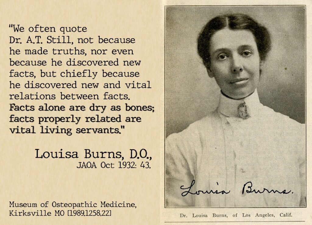 - Louisa Burns, M.S., D.O. : une pionniaire de la recherche en ostéopathie