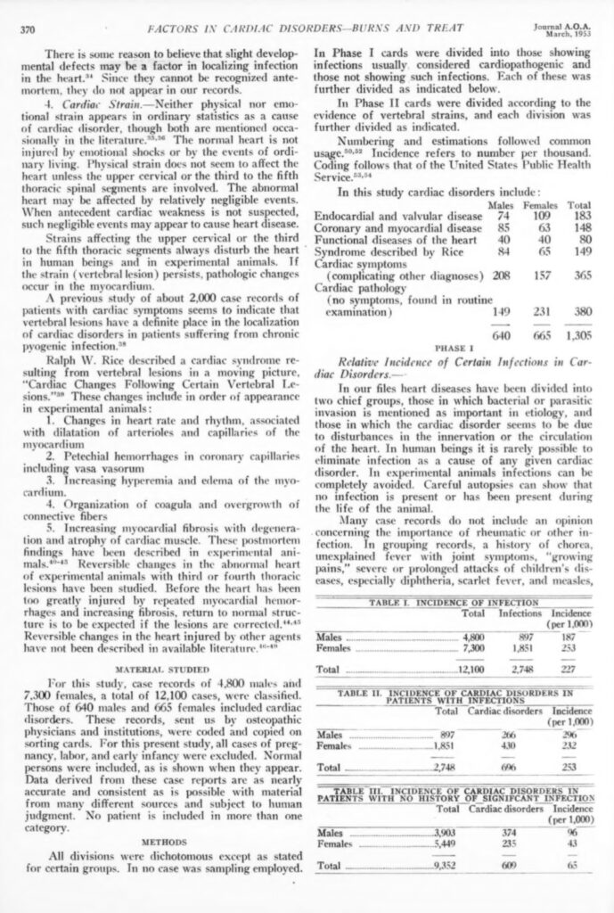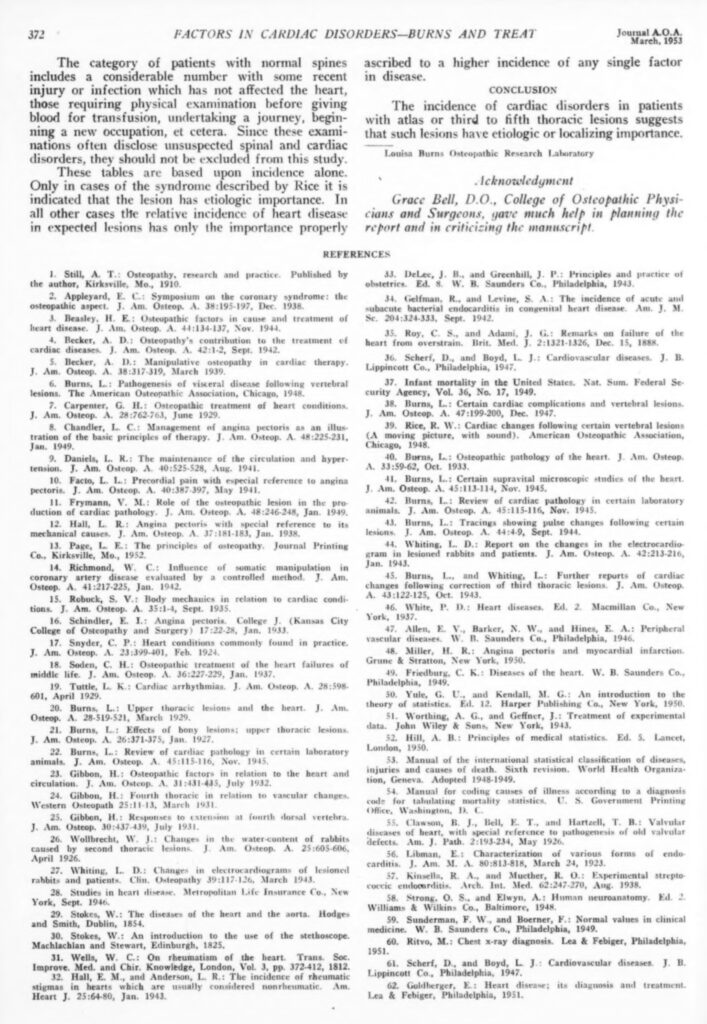 63. LOUISA BURNS, M.S., D.O. ; CLARA L. TREAT, D.O.. 1953. Incidence of certain etiologic factors in cardiac disorders. JAOA vol. 52 (7)