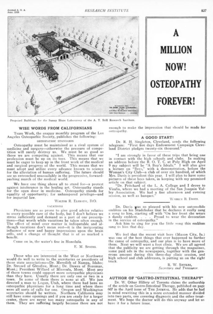 (Osteopathic Colleges Today, JAOA, vol. 26, n° 6, p. 499-500).