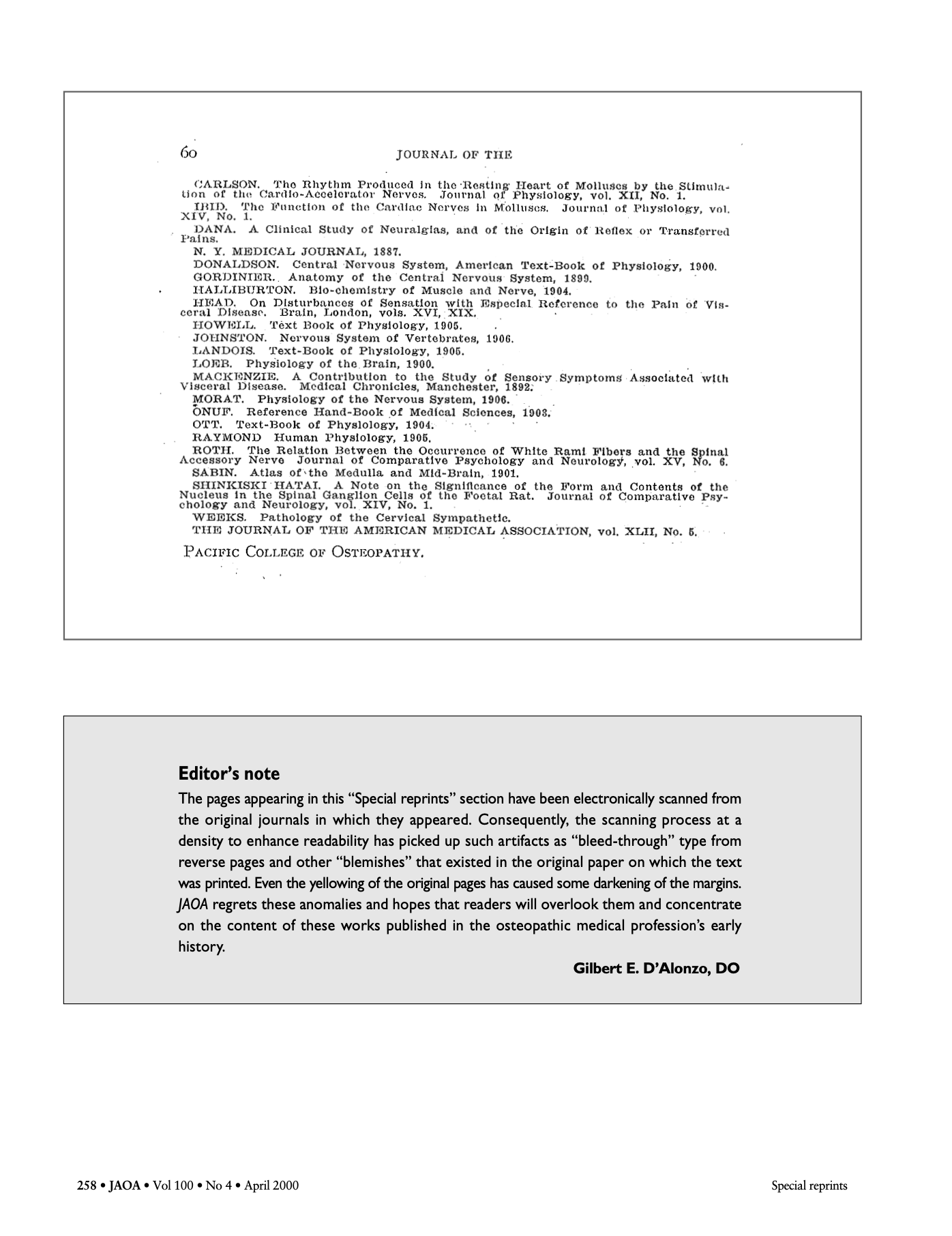 34. LOUISA BURNS, M.S., D.O.. 1926. Effects of bony lesions – PART I. JAOA vol. 26 (4)